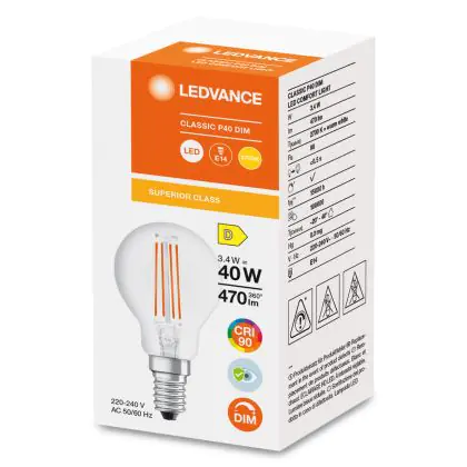 | Herstellername | LED CLASSIC P DIM CRI 90 S 3.4W 927 FIL CL E14 | |