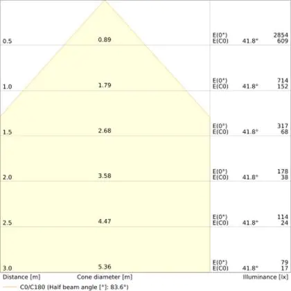 Der Abstrahlwinkel bezeichnet den Winkel, in dem das Licht aus der Lichtquelle ausgestrahlt wird. Er wird in Grad (D) angegeben. Je geringer die Gradzahl des Abstrahlwinkels ist, desto kleiner ist auch der Durchmesser des Lichtkegels, den die Lichtquelle produziert.