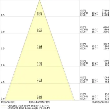 Der Abstrahlwinkel bezeichnet den Winkel, in dem das Licht aus der Lichtquelle ausgestrahlt wird. Er wird in Grad (D) angegeben. Je geringer die Gradzahl des Abstrahlwinkels ist, desto kleiner ist auch der Durchmesser des Lichtkegels, den die Lichtquelle produziert.