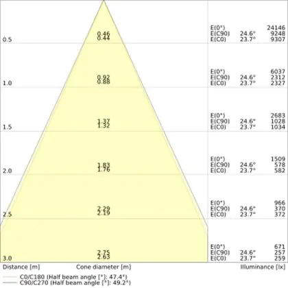 Der Abstrahlwinkel bezeichnet den Winkel, in dem das Licht aus der Lichtquelle ausgestrahlt wird. Er wird in Grad (D) angegeben. Je geringer die Gradzahl des Abstrahlwinkels ist, desto kleiner ist auch der Durchmesser des Lichtkegels, den die Lichtquelle produziert.