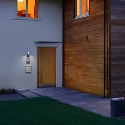 Beleuchtung mit Sensor schaltet sich nur ein, wenn ein bestimmtes Signal empfangen wird. Dies senkt die Energiekosten. Die (integrierten) Sensoren reagieren auf Dunkelheit (Dämmerungsschalter) und/oder Bewegung (Bewegungsmelder).