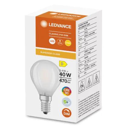Ledvance Superior Classic LED E14 Kugel Matt 3.4W 470lm - 927 | Dimmbar - Höchste Farbwiedergabe