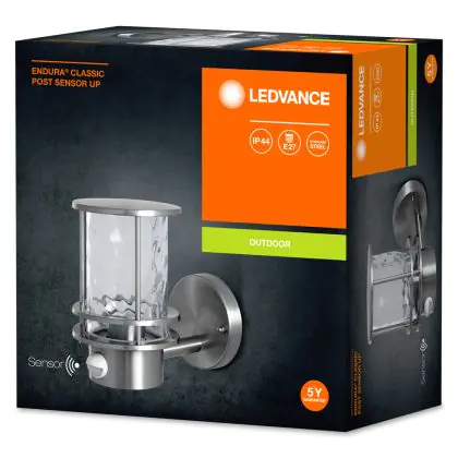 Ledvance Wandleuchte Post Endura Classic E27 Stahl | Up - Bewegungs- und Lichtsensor