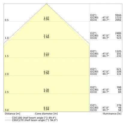 Le code couleur se compose de l'indice de rendu des couleurs (IRC) et de la température de couleur (Kelvin). Le premier chiffre indique le rendu des couleurs (1 = très mauvais rendu des couleurs, 9 = meilleure authenticité des couleurs). Le deuxième et troisième chiffre indiquent la température de la couleur. Exemple : Le code couleur "830" indique que la lampe a un bon rendu des couleurs (8) et une couleur de lumière blanche chaude (30 = 3000K). |