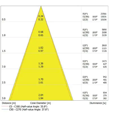 • Angle de diffusion: 36 °