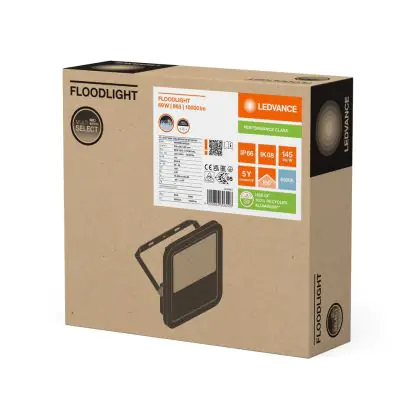 Description Ledvance Projecteur LED 100 Aluminium Blanc 69W 10000lm 100D - 865 | IP66 - Symétrique