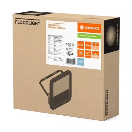 Description Ledvance Projecteur LED Aluminium Noir 69W 10000lm 100D - 865 | IP66 - Symétrique