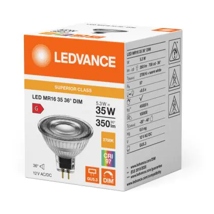 Description Ledvance Spot LED GU5.3 MR16 6.3W 355lm 36D - 927 Blanc Très Chaud | Meilleur rendu des couleurs - Dimmable - Équivalent 35W