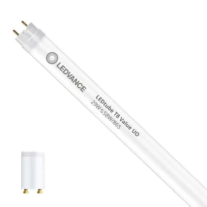 Ce tube LED Ledvance Tube LED T8 Value (EM/Mains) Ultra Output 29W 3500lm - 865 | 150cm - Remplacement 58W est l’un des produits les plus éconergétiques en remplacement des tubes T8 classiques. Avec ce tube LED vous êtes donc assuré de sa qualité. Avec une puissance de seulement 29 W, ce tube LED a la même intensité lumineuse qu’un tube classique qui consomme 58 W.