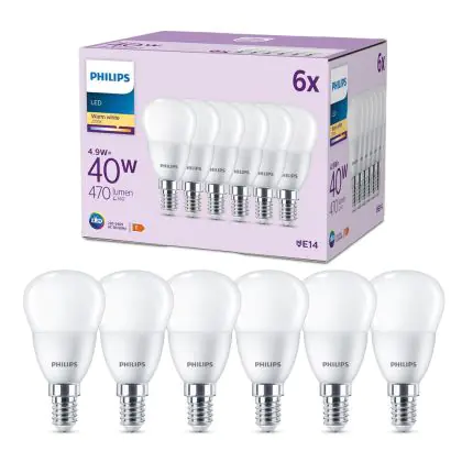 Cette ampoule Lot 6x Philips Ampoule LED E14 Poire Dépolie 5W 470lm - 827 avec son efficacité lumineuse de lumen par watt vous permettra de profiter d’un éclairage de qualité. Avec sa durée de vie de 15000 heures, vous n’aurez pas à vous soucier de son remplacement avant quelques années.
