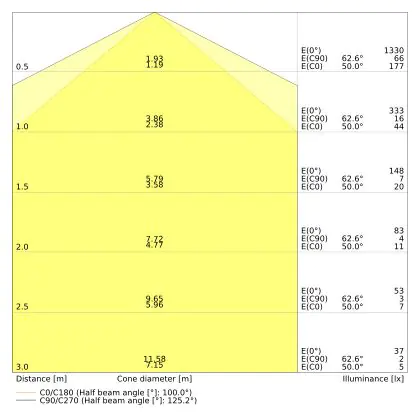 Cette indication vous permet de savoir quelle source de lumière conventionnelle est remplacée par le produit LED, grâce à la puissance en watts