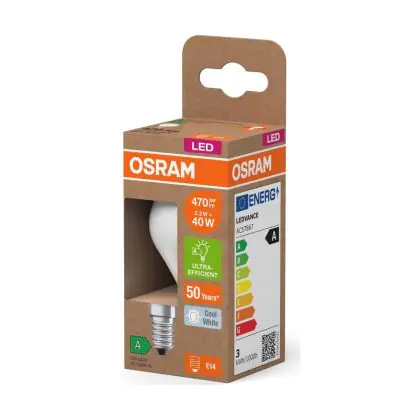 Cette ampoule Osram LED Classic LED E14 Poire Filament Dépolie 2.2W 470lm - 840 | Remplacement 40W avec son efficacité lumineuse de lumen par watt vous permettra de profiter d’un éclairage de qualité. Avec sa durée de vie de 50000 heures, vous n’aurez pas à vous soucier de son remplacement avant quelques années.