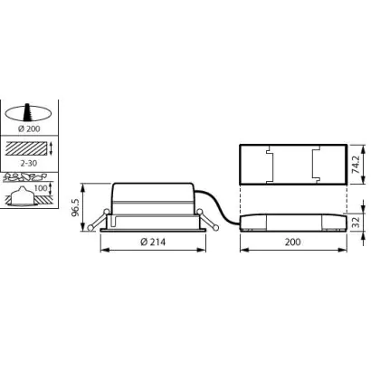 Description Philips Spot encastrable LED LuxSpace Compact bas DN570B 36.3W 4400lm 80D - 830 | 214mm - Aluminium Réflecteur