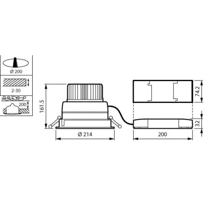Description Philips Spot encastrable LED LuxSpace Compact bas DN570B 52.8W 6200lm 80D - 830 | 214mm - Aluminium Réflecteur