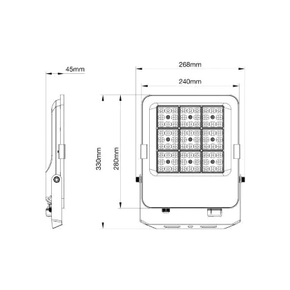 | Nom du fabricant | Budgetlight LED Floodlight Beam V2.0 40W 5600lm 90D - 830-840-865 CCT | IP66 - Asymmetrical Type II | |